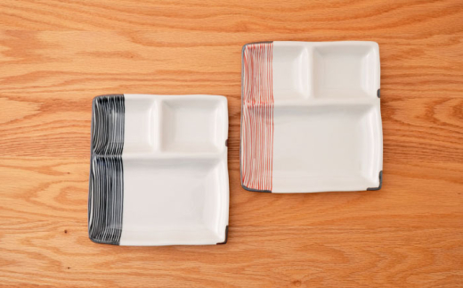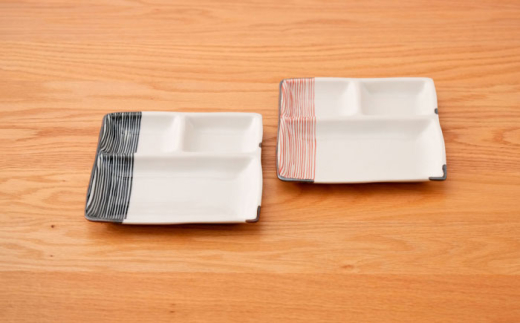 【波佐見焼】ハーフライン 仕切りプレート ペア【団陶器】 [PB167]