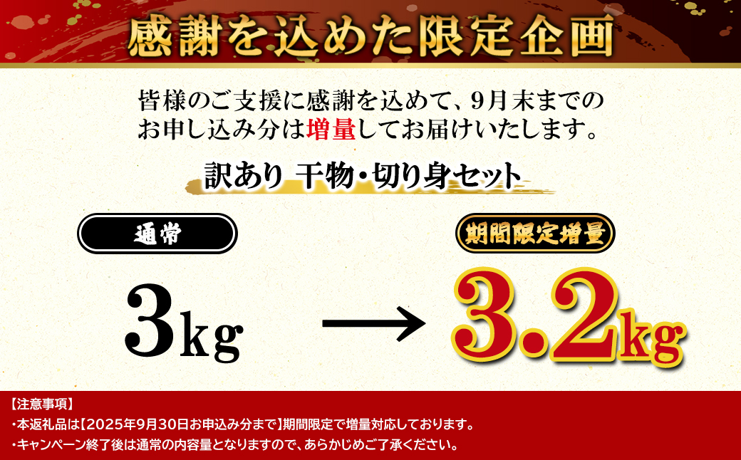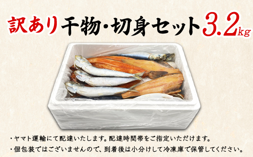 【9月末まで期間限定増量中】【2025年10月下旬発送】訳あり 干物・切身 セット 3.2kg お試し 規格外 傷 不揃い 詰め合わせ おまかせ 干物 魚 ホッケ カレイ イワシ