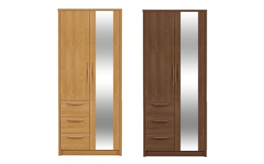 - シャーロットⅡ80ワードローブ NA・BR チェスト 棚 衣類収納 洋服タンス クローゼット 強化紙 姿見ミラー・ネクタイ掛け付き アルダー木目 ウォールナット木目 シンプル 家具 インテリア 福岡県 柳川市 送料無料