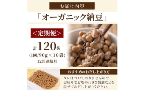 - K-599-B <12回定期便>国産!有機JAS認定・オーガニック納豆(計120袋・90g×10袋 12回)【お多福たまご】霧島市 自然栽培 大豆 納豆 朝食