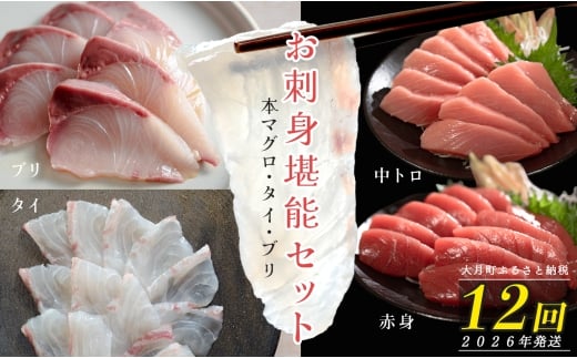 【定期便 12回】本マグロ・タイ・ブリ お刺身堪能セット