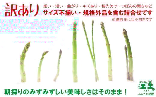 \春アスパラ 先行予約 2026年4月~順次出荷予定/《訳あり》北海道江差町産 アスパラガス 1kg【サイズ不揃い・規格外MIX】 見た目は良くなくても鮮度や味は正規品と変わりません! 朝採り 農家直送 新鮮 鮮度保持 北海道 旬野菜 グリーンアスパラ アスパラ ご自宅用 無選別・規格外・ハネ物・B品