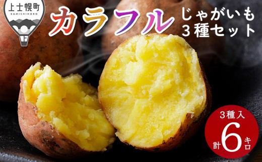 北海道産 カラフル じゃがいも 3種セット 計6kg(2kg×3種) 北海道 上士幌町 加藤農場 野菜 ジャガイモ 馬鈴薯 産地直送 おすそ分け用紙袋2枚付き ◆2025年12月配送予定 [009-V71] ※オンライン申請対応