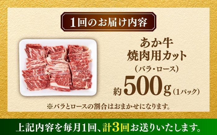 【全3回定期便】熊本あか牛 焼肉用カット ( バラ ロース ) 500g 【合同会社 長岡フーズ】 [ZFR042]