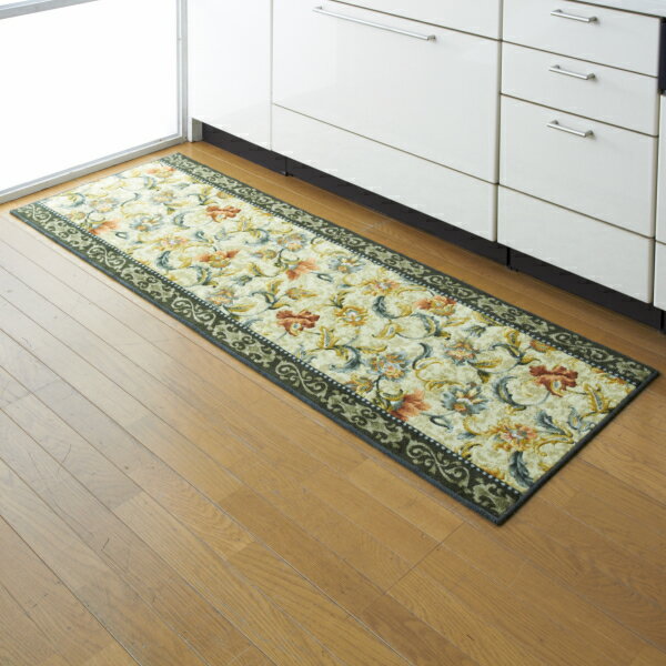 【ふるさと納税】日本製 廊下カーペット 65cm×700cm 【オリエンタル更紗】滑り止め加工(グリーン・エンジ)【G1273171】