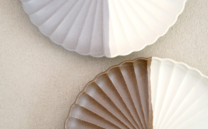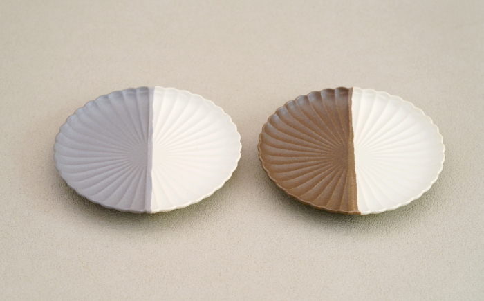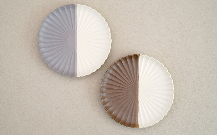 - 【波佐見焼】花しのぎ 中皿 ペア ハーフカラー 栗・グレー【団陶器】 [PB179]