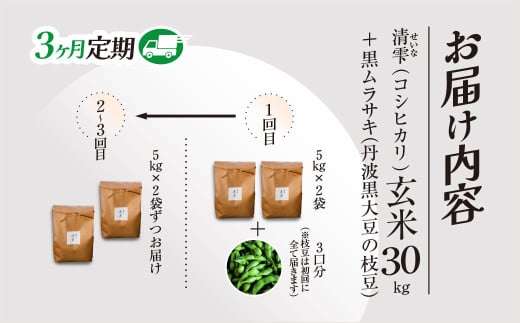 - \\計30kg ♪//<令和7年10月中旬より発送!>【3ヶ月定期】田んぼオーナーシップ3口分 清雫 玄米10kg+黒ムラサキ(丹波黒大豆の枝豆)/ ふるさと納税 田んぼ オーナー オーナー制度 米 玄米 10kg 3回 30kg 令和7年度産 先行 収穫 定期 夜久野 京都 京都府 福知山 FCDB006