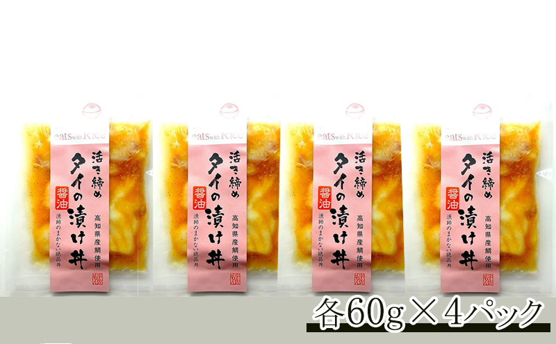 鯛 漬け丼 60g × 4パック | 海鮮 丼 醤油漬け 活き締め タイ マダイ 真鯛 惣菜 漬丼 お手軽 おかず 魚 刺身 小分け ギフト 人気 加工品 お茶漬け 冷凍 時短 国産 産地直送 みなみ丸 高知県 須崎市 MM004_x2