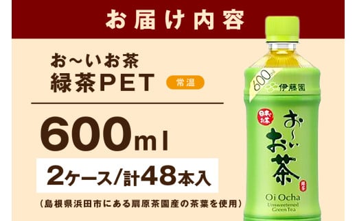 - お~いお茶 緑茶PET 600ml 24本入り×2ケース 計48本 伊藤園 飲料 ドリンク 緑茶 お茶 おーいお茶 ペットボトル 600ml 備蓄 新生活 応援 準備 【114_1709】