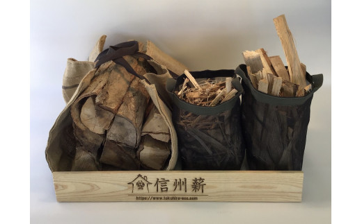 麻の運搬バッグ付 信州薪セット(広葉樹)