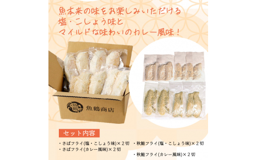 骨取り味付けさばフライ4切&秋鮭フライ4切(塩・こしょう味とカレー風味味 各2切) / さば サバ 鯖 さけ サケ 鮭 魚 海鮮 フライ 揚げ物 おかず【uot802】