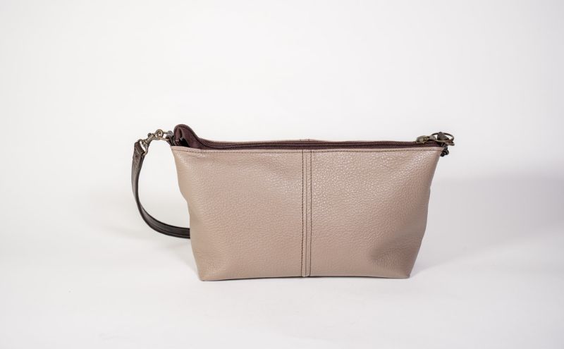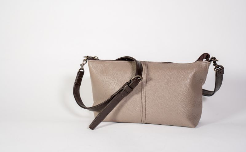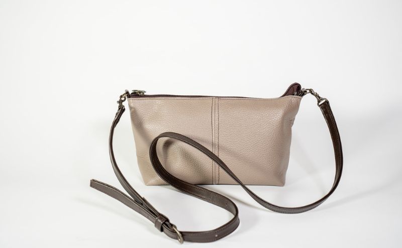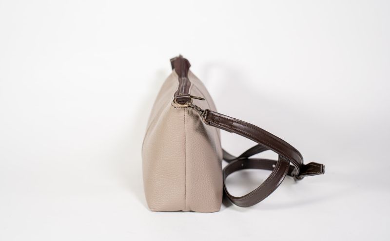 - ショルダーバッグ ベージュ(焦げ茶ショルダー) 鞄 かばん バッグ 皮 本皮 レザー 国産 日本製 上質 シンプル ハンドメイド 手縫い 赤穂市 兵庫県