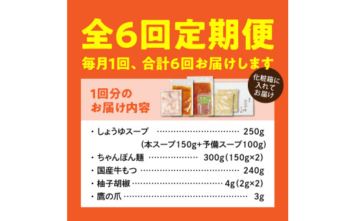 - 【定期便】博多もつ鍋おおやま もつ鍋しょうゆ味2人前 6回(毎月)コース 06T-018