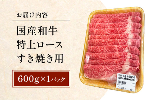 【最短7日前後発送】国産和牛特上ロースすき焼き用 600g 冷凍 肉 お肉 牛肉 和牛 黒毛和牛 国産 国産牛 うす切り 切り落とし すき焼き すきやき カレー 肉じゃが 牛丼 大阪府高槻市/株式会社ミートモリタ屋 [AOAI057]