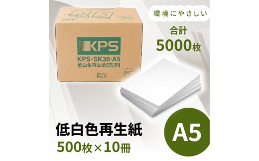 - KPS-SK30 低白色再生紙 A5 500枚×10冊/1箱 合計5,000枚 複合機 印刷 送料無料 BB10