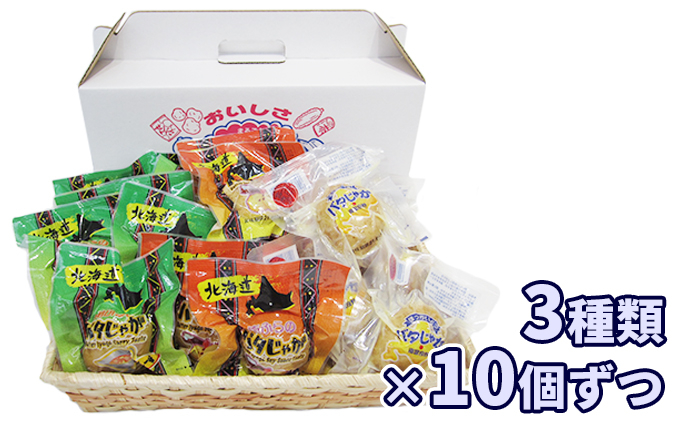北海道みやげで大人気!バタじゃが3種の味くらべセット30個 株式会社 南富良野町振興公社 ジャガイモ バター 野菜 芋 25個 セット じゃがいも レンジ セット 詰合せ