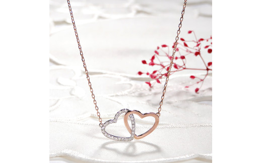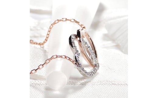 ネックレス PT900 K18PG プラチナ ピンクゴールド ダイヤモンド 0.13ct オープンハート コンビ 両吊り ペンダント 18金 レディース ジュエリー【f214-ptpg】 ALPAZ129