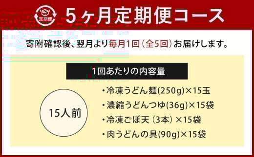 【定期便5カ月】 資さん肉ごぼ天うどん(15人前)×5回 合計75人前 肉うどん ごぼう天うどん