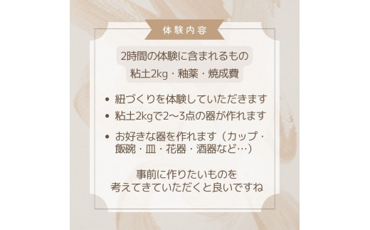 - 陶芸作家から学ぶ器づくり 陶芸教室 紐づくり陶芸体験 1名様 2時間