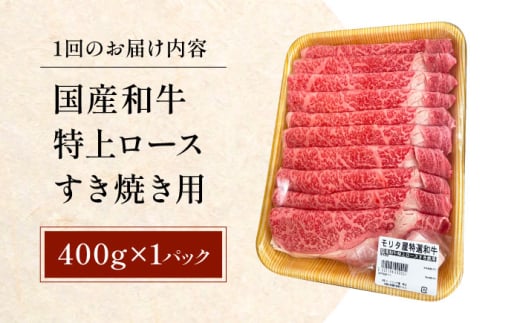 【全6回定期便】国産和牛特上ロースすき焼き用 400g ロース すき焼き 牛肉 お肉 国産 和牛 冷凍 A5 6ヶ月 大阪府高槻市/株式会社ミートモリタ屋 [AOAI033]