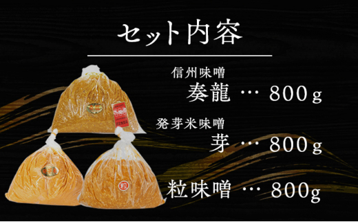 - (B) 味噌 無添加 信州味噌 こだわり セット 800g × 3種 6か月定期便 みそ 詰め合わせ ミソ 信州 手作り 調味料 天然醸造 信州みそ 米味噌 米みそ 長野県 長野 株式会社大桂商店 [№5312-0999]