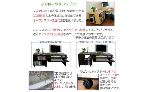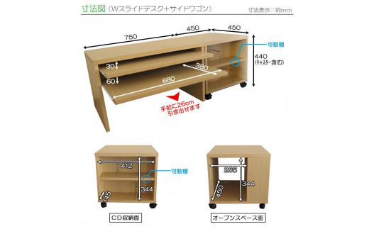 - 【ホワイト】スライド棚2段 ロータイプ ワゴン付 パソコンデスク 約幅1200(デスク+ワゴン)奥行450高さ440mm