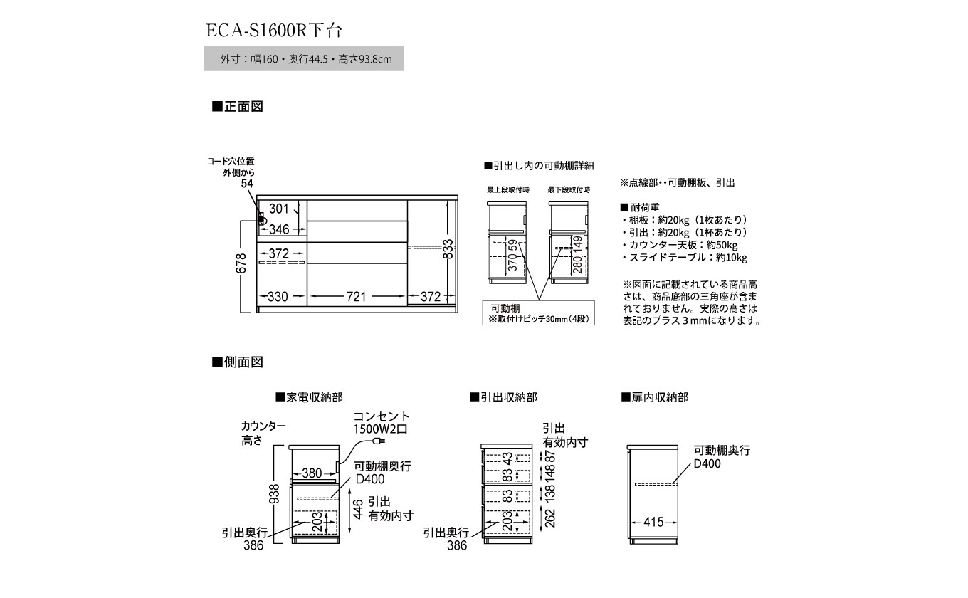 - 食器棚 カップボード 組立設置 ECA-S1600Rカウンター [No.615] / 家具 インテリア 岐阜県