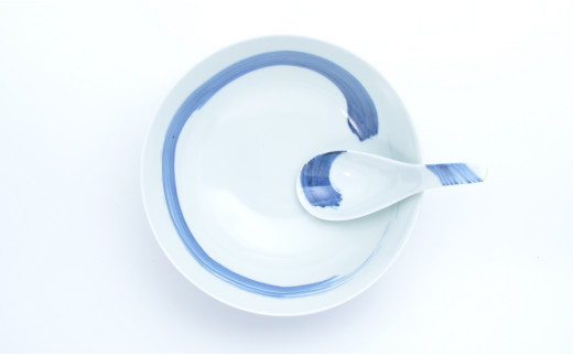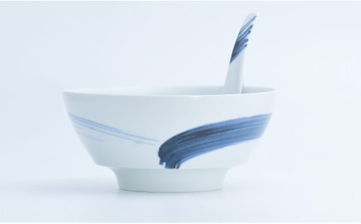 - 有田焼 究極のラーメン鉢 呉須刷毛(レンゲ付)白磁 究極のフォルム 軽量化 持ちやすい 洗いやすい まるぶん AA18-69