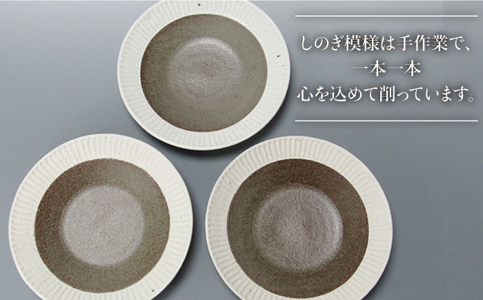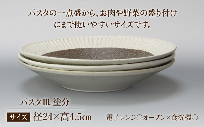 【美濃焼】<おしゃれな食卓に>鎬 24cm パスタ皿 塗分 3枚セット【藤山窯】【TOKI MINOYAKI返礼品】 [MAH063]