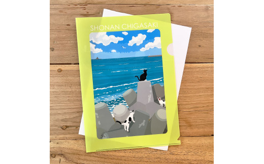 - 湘南・茅ヶ崎で描く、海を感じるイラストアート 『湘南ランドスケープ:A4 クリアファイル 5枚セット』 /風景 絵画 サザンC 犬 猫