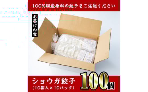 - i393-f 【父の日ギフト】国産豚肉使用!手作りショウガ餃子100個セット(10個×10パック たれ付き) 餃子 ぎょうざ ニンニク不使用 しょうが 生姜 冷凍 おかず おつまみ 惣菜 小分け 国産原料 父の日 プレゼント ギフト 贈答 【スーパーよしだ】