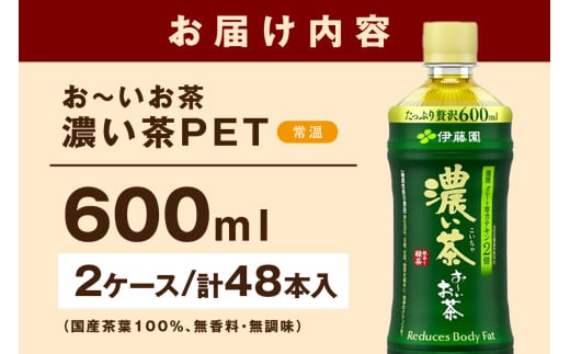 お~いお茶 濃い茶PET 600ml 24本入り×2ケース 計48本 ドリンク 飲料 セット ペットボトル 濃い茶 伊藤園 備蓄 新生活 応援 準備 【114_1711】