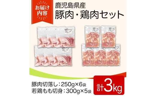 y551 鹿児島県産豚肉・鶏肉セット(計3kg) 国産 九州産 鹿児島県産 鶏肉 鳥肉 鶏 とり 若鶏 豚肉 切り落とし 切落し 冷凍 もも モモ 小分け 真空 【TRINITY】