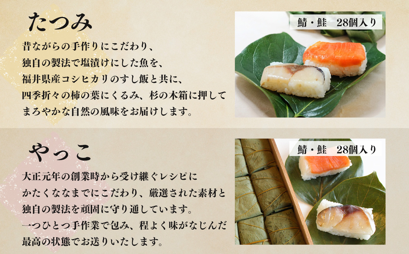 一つ一つ手作業で作られた「柿の葉寿司」サバ2箱・鮭1箱セット
