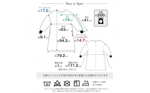 - ドロップショルダー割烹着(カラー:ブラック)エプロン
