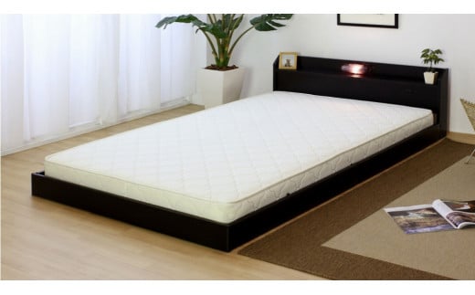 - 【組立サービス付】268 シングルサイズ 棚コンセント照明付フロアベッド 国産ボンネルコイルマットレス(10816B)付(ブラック)(1495)