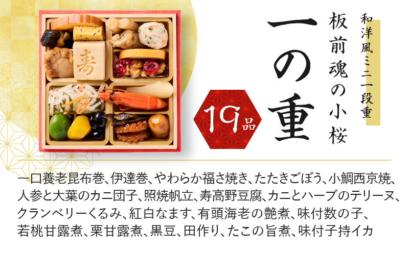 おせち「板前魂の小桜」3個セット 和洋風 ミニ一段重 4.8寸 19品 0.7人前 先行予約【おせち おせち料理 板前魂おせち おせち2026 おせち料理2026 冷凍おせち 贅沢おせち 先行予約おせち 年内発送】