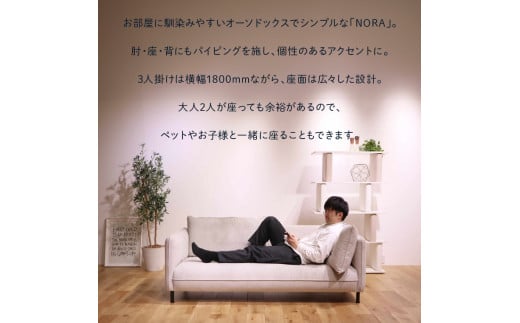 - blocco NORA(ノラ)3人掛け|ブロッコ 北海道 石狩市 家具 ファミリー 家族用 リビング リビングルーム 三人掛け 三人用 3シーター 3人用 3名用 モダン シンプル 高級 耐久 長持ち 高級家具 メンテナンス 保証 座面一枚 肘掛けあり おしゃれ パイピング