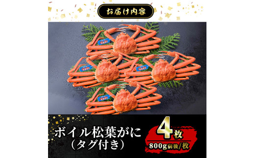 <平日着※指定日不可><1月初旬~2月下旬発送予定><期間限定・数量限定>境港水揚げ 松葉ガニ(4枚)【sm-BP003-A】【フジキコーポレーション】