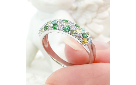指輪 プラチナPT900 マルチカラー パヴェリング エメラルド ペリドット 花畑 緑系 誕生石 カラーストーン【f235-g-pt】※10号 ALPAZ113-10