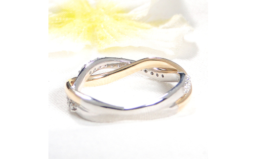 指輪 PT900 K18YG プラチナ イエローゴールド ダイヤモンド 0.22ct コンビリング ツイスト レディースリング スパイラル ねじれ ひねり ジュエリー【f230-ptyg】※15号 ALPAZ131-15
