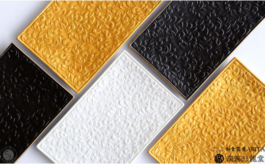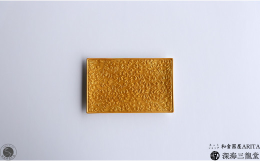 金彩唐草彫長角銘々皿 / 2枚 セット 深海三龍堂 有田焼 和食器 和風 角皿 菓子皿 取り皿 プレート スクエア 金 ゴールド A20-519