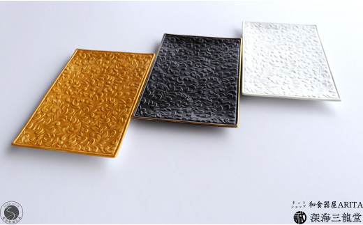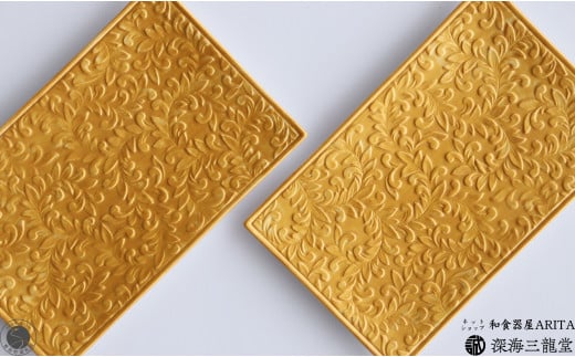 - 金彩唐草彫長角銘々皿 / 2枚 セット 深海三龍堂 有田焼 和食器 和風 角皿 菓子皿 取り皿 プレート スクエア 金 ゴールド A20-519