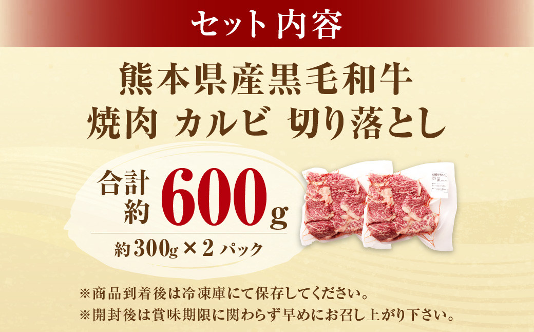 熊本県産黒毛和牛 焼肉 カルビ 切り落とし 約600g(300g×2パック)牛肉 肉