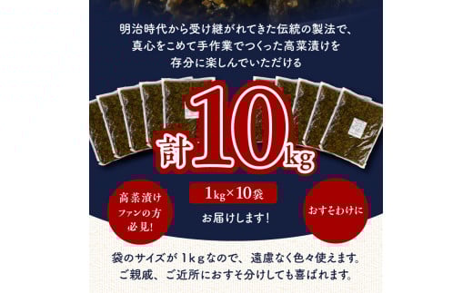 - 国産辛子高菜メガセット_国産 辛子高菜 1kg × 10袋 小分け 便利 おすそわけ 程よい ピリ辛 高菜 油炒め ごま 漬物 栄養豊富 健康維持 ご飯 おにぎり チャーハン パスタ ラーメン 牛丼 和え物 炒め物 宅飲み メガ セット お取り寄せ お取り寄せグルメ 福岡県 久留米市 送料無料_Ca211_V1