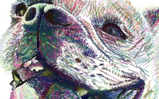 文字だけを使った絵画「文字ベースアート (MojiBa)」フレンチブルドッグ A4サイズ(白黒)