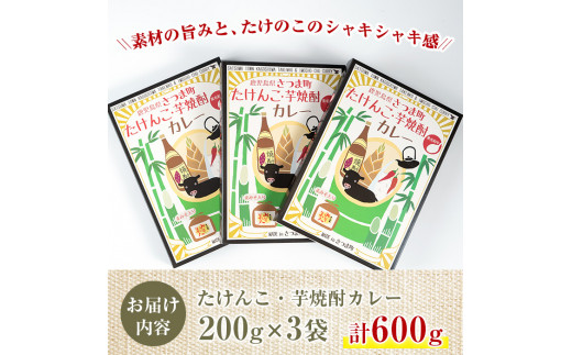 - s053 たけんこ・芋焼酎カレー(200g×3P 計600g) 鹿児島 ご当地カレー レトルトカレー 黒毛和牛 たけのこ 芋焼酎 常温保存 常温【Helloさつま】