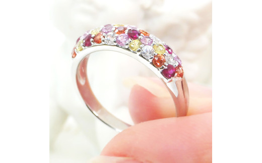 指輪 プラチナ PT900 マルチカラー パヴェリング サファイア ルビー 花畑 赤系 誕生石 カラーストーン【f235-r-pt】※11.5号 ALPAZ115-11_5