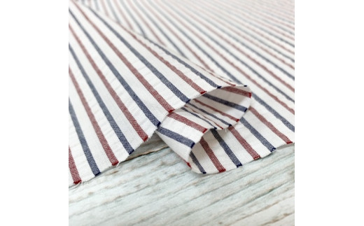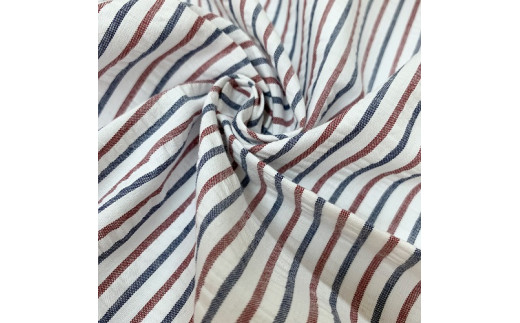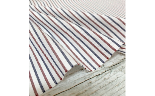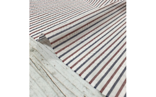 - 06-26 播州織生地「コットンサッカーストライプ(50013)」(1.5m) 赤ストライプ