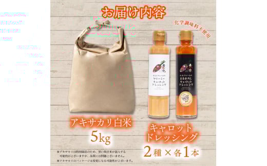 白米 5kg +ドレッシング2種×各1本 山上ファームのイチオシセット 白米 5kg 令和7年産 濃紅みつキャロット ドレッシング 2種 アキサカリ 米 5キロ